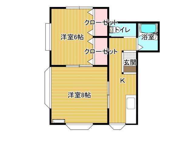 | 詳細間取 | 2K (洋8帖×1、洋6帖×1、キッチン5帖) | ||