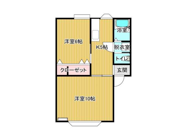 | 詳細間取 | 2K (洋10帖×1、洋6帖×1、キッチン5帖) | ||
